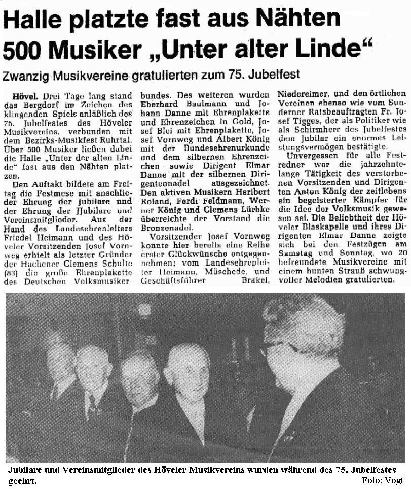 Im Jahre 1980 konnte der Musikverein "Cäcilia" Hövel auf 80 Jahre zurückblicken. Dementsprechend wurde auch ein