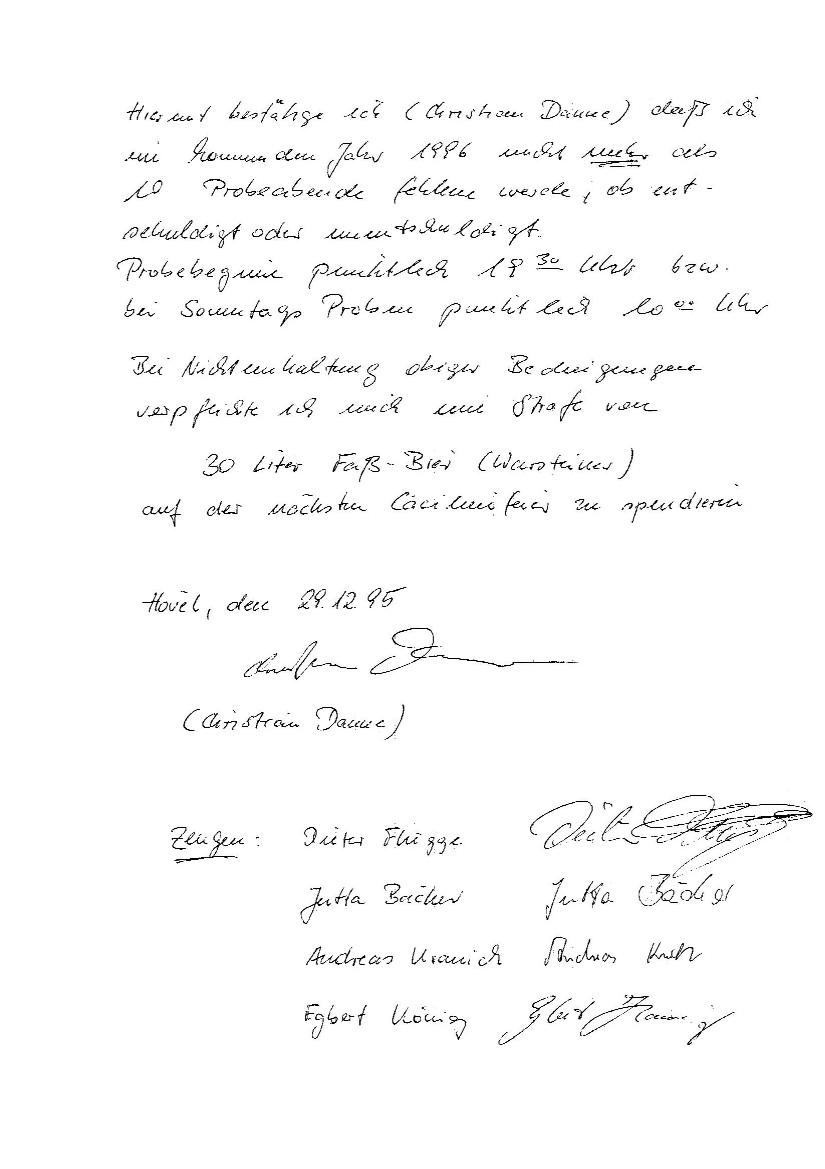 Ein ungewöhnlicher "Vertrag" (siehe nebenstehendes Bild) wurde während der Generalversammlung 1995 unterzeichnet.