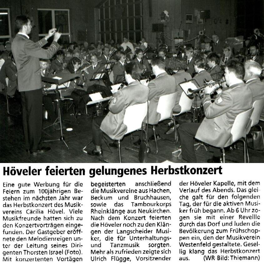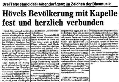 Betrachtet man diese zwei Tage [22. und 23.9.1990, Herbstfest] im Nachhinein, so muss man feststellen, daß der Besuch der Höveler Bevölkerung sehr schlecht war. Dieses ist besonders traurig, wenn man bedenkt, daß der Musikverein