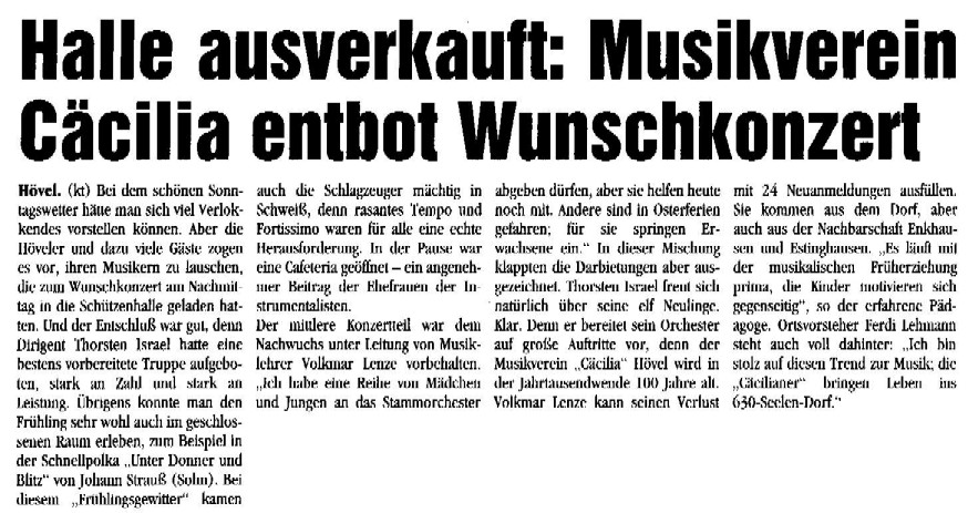 Ein Wunschkonzert wurde im Frühjahr 1999 in der Höveler Schützenhalle dargeboten. Besonders gut gefiel dem
