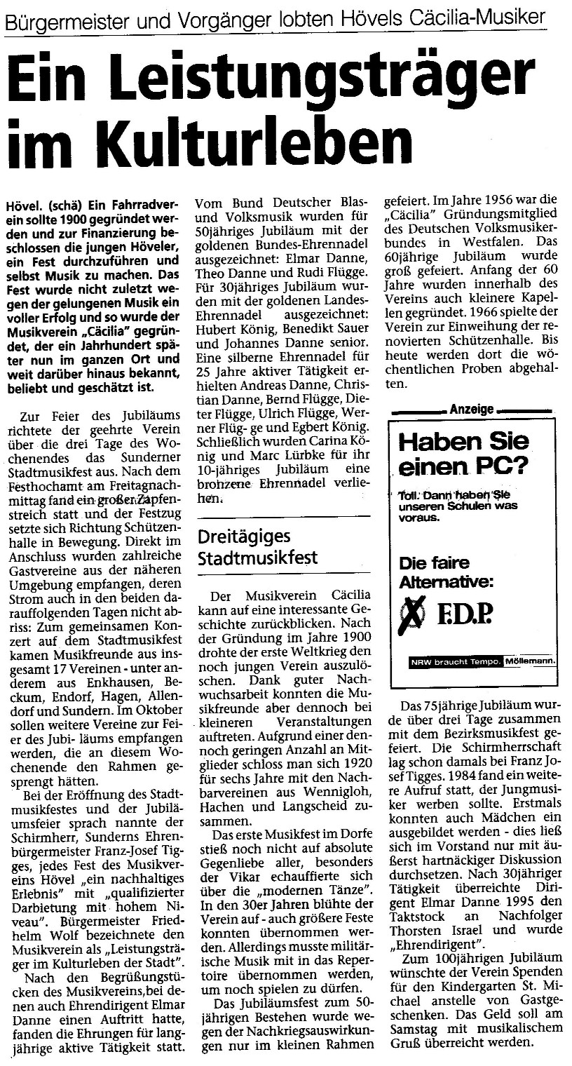 aus der Westfalenpost vom 8. Mai 2000