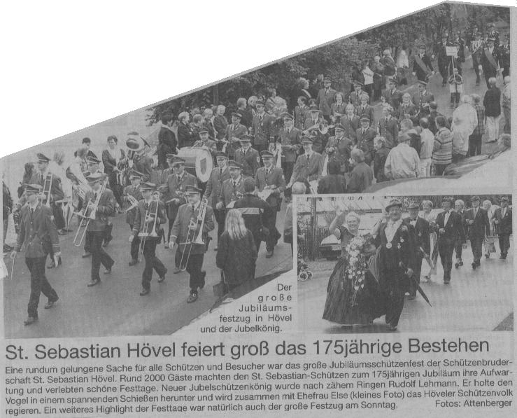 das Jubelschützenfest zum 175jährigen Bestehen der "Schützenbruderschaft St. Sebastian 1826 Hövel e.V.".