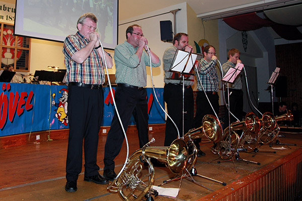 Im Jahre 2011 wurde der Musikverein 111 Jahre alt. Das karnevalistische Jubiläum war Grund genug, einmal wieder im Programm der Prunksitzung mitzuwirken. Diesmal war es das Tenorhorn / Bartin-Register, welches das Publikum mit einer kleinen Show begeisterte. Dabei waren Bernd Flügge, Stefan HEymer, Markus Allefeld, Max Bücher und Benedikt Sauer.